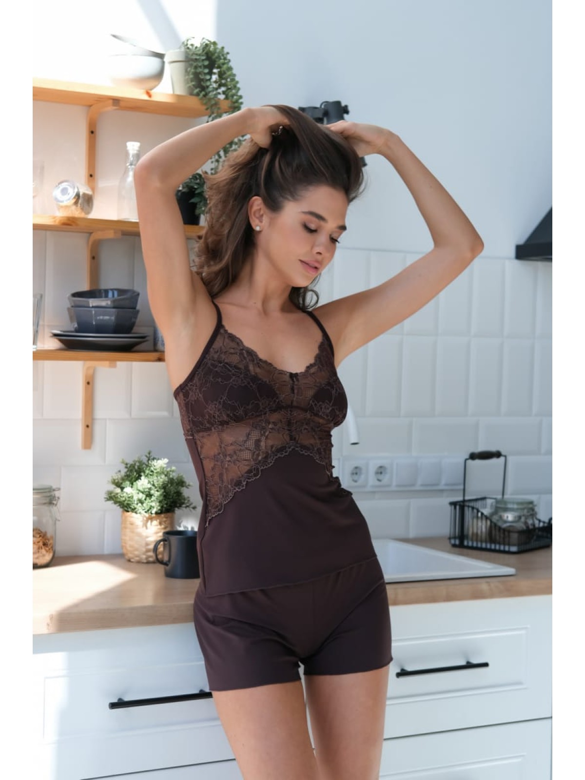 Piżama P-M-60 Czekolada od Violet Delux: Ucieleśnienie Lekkości i Kobiecości dla Twojego Domu.
